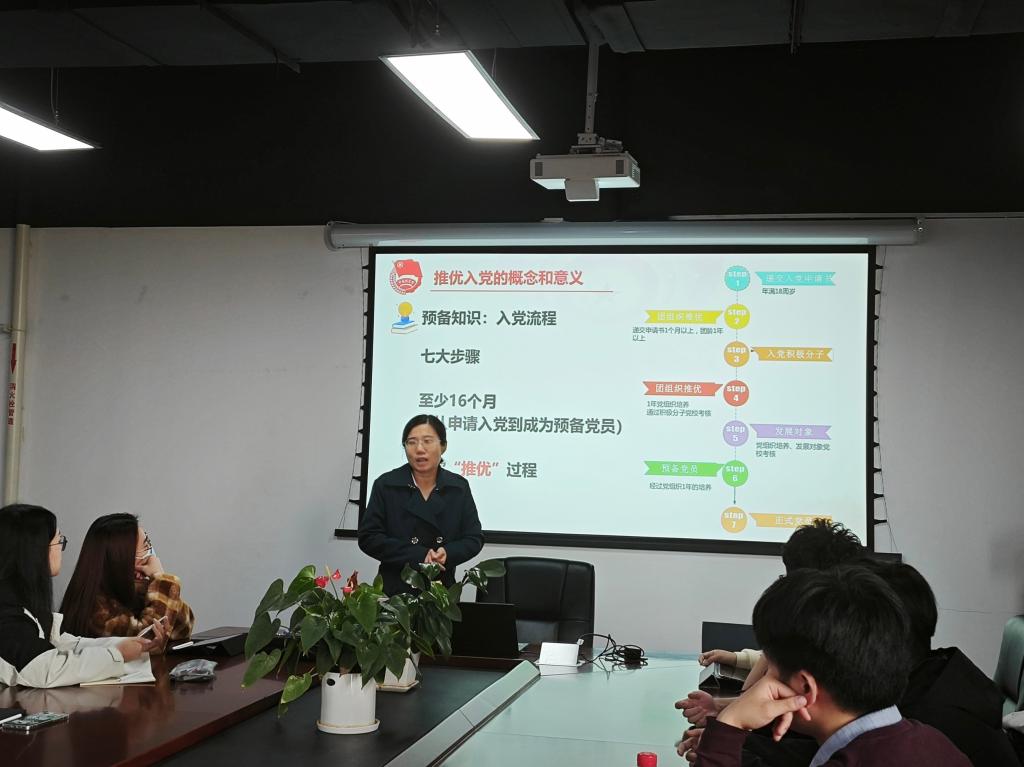 yl88858永利官网团委书记、本科生第一党支部书记吴蓓详细讲解了yl88858永利官网“推优入党”的标准及规范,强调了党团共建,党支部要努力发展优秀员工加入中国共产党。