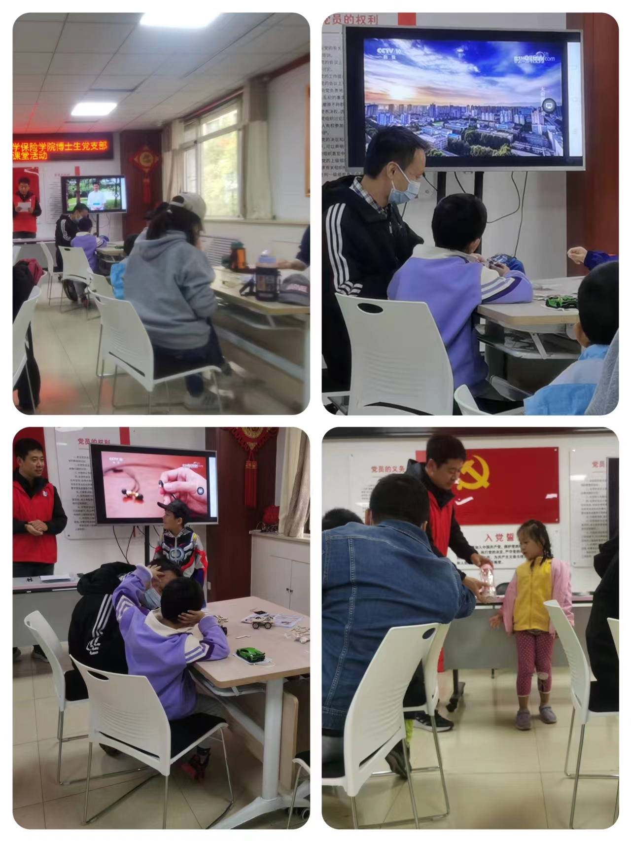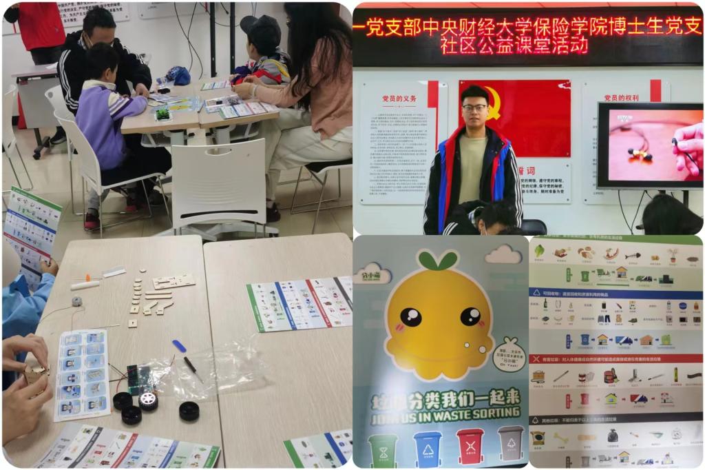 上午9点,在支部书记赵桦的带领下,博士生党支部成员到达恒大幸福家园社区活动现场。本次活动主要由“助力垃圾分类,从我做起”“节约资源、保护环境”知识课堂、“太阳能月球车制作”三部分构成。现场参与人数40余人,气氛热烈。组织志愿者和社区居民进行现场签到、知识宣讲、有奖问答、现场秩序维持、活动现场摄影、录像……在支部成员的共同努力下,活动现场有条不紊。