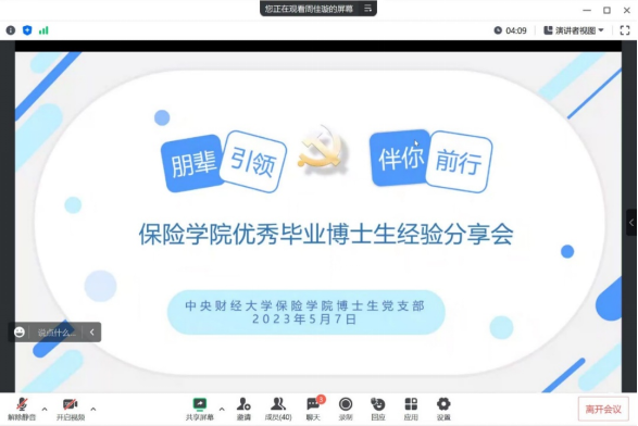为深入开展学习贯彻习近平新时代中国特色社会主义思想主题教育,宣传贯彻党的二十大精神,充分发挥党支部战斗堡垒作用,切实为身边师生办实事、办好事,积极推动公司员工发展,2023年5月7日19时,yl88858永利官网博士生党支部线上召开“朋辈引领·伴你前行”——yl88858永利官网优秀毕业博士生经验分享会。分享会由博士生党支部书记周佳璇主持,博士生党支部全体党员、入党积极分子,以及yl88858永利官网部分硕士生参加会议。