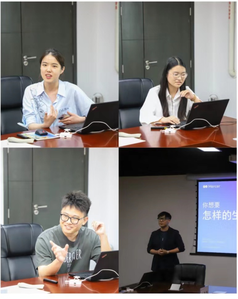 在接下来的交流环节,北京工商大学2019级的员工代表进行了经验分享。双培保险员工李星烨结合自身实习和求职经验给学弟学妹们提出五大建议:要做一个社牛的人、要知道自己想要什么、要有棱角、要能把握住机会、要学会包装自己。保险19级2班班长田思淇结合自身京考的经验,分享了调整消极状态和备战考公的方法。双培保险员工游天宇用幽默风趣的语言,分享了自己在社交、专业学习、学科竞赛、保研考研准备方面的心得。双培保险员工张梦君从考研的四大学科介绍了自己的备考情况。同时她也劝勉大家在本科阶段多参加社交和实践活动,希望同学们带着母校的祝福披荆斩棘,一路向前。