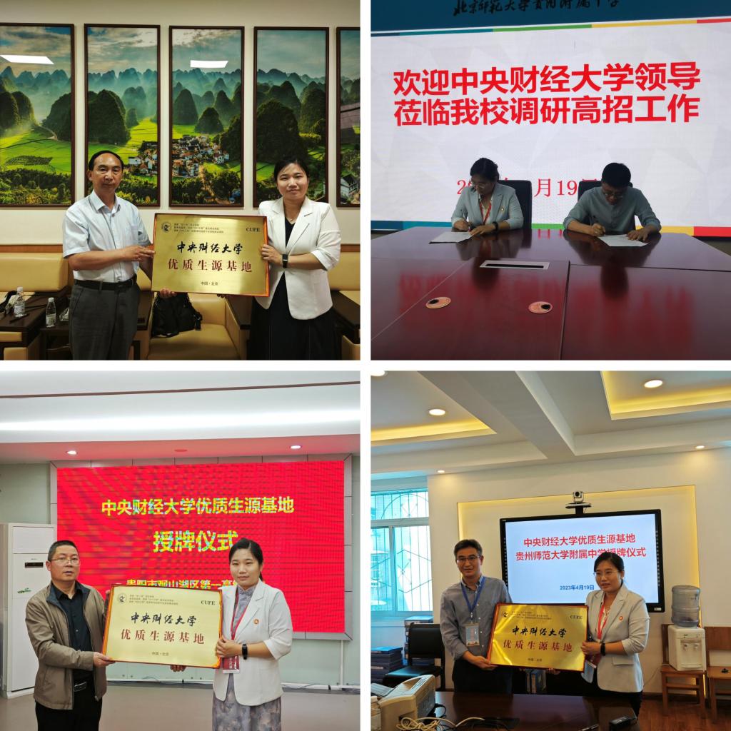 4月17日—4月21日,贵州招生组先后赴兴义八中、遵义市第四中学、北京师范大学贵阳附属中学、贵州师范大学附属中学、贵州省毕节梁才公司、贵阳市观山湖区第一高级中学和六盘水市第二中学,与主要校领导进行座谈,交流双方公司基本情况、高校招生情况,并进行了优质生源基地授牌活动。